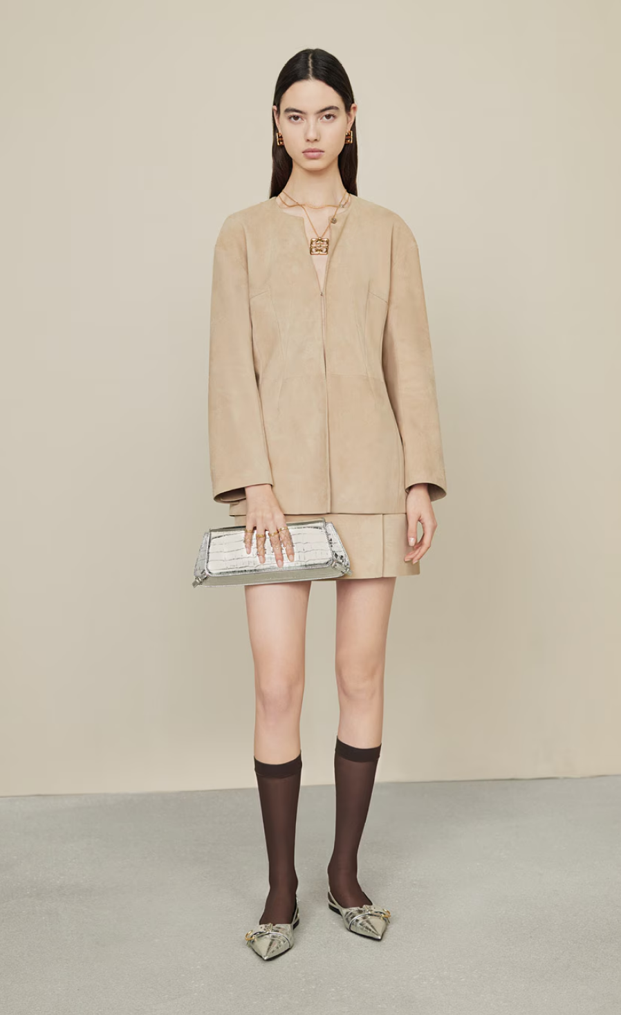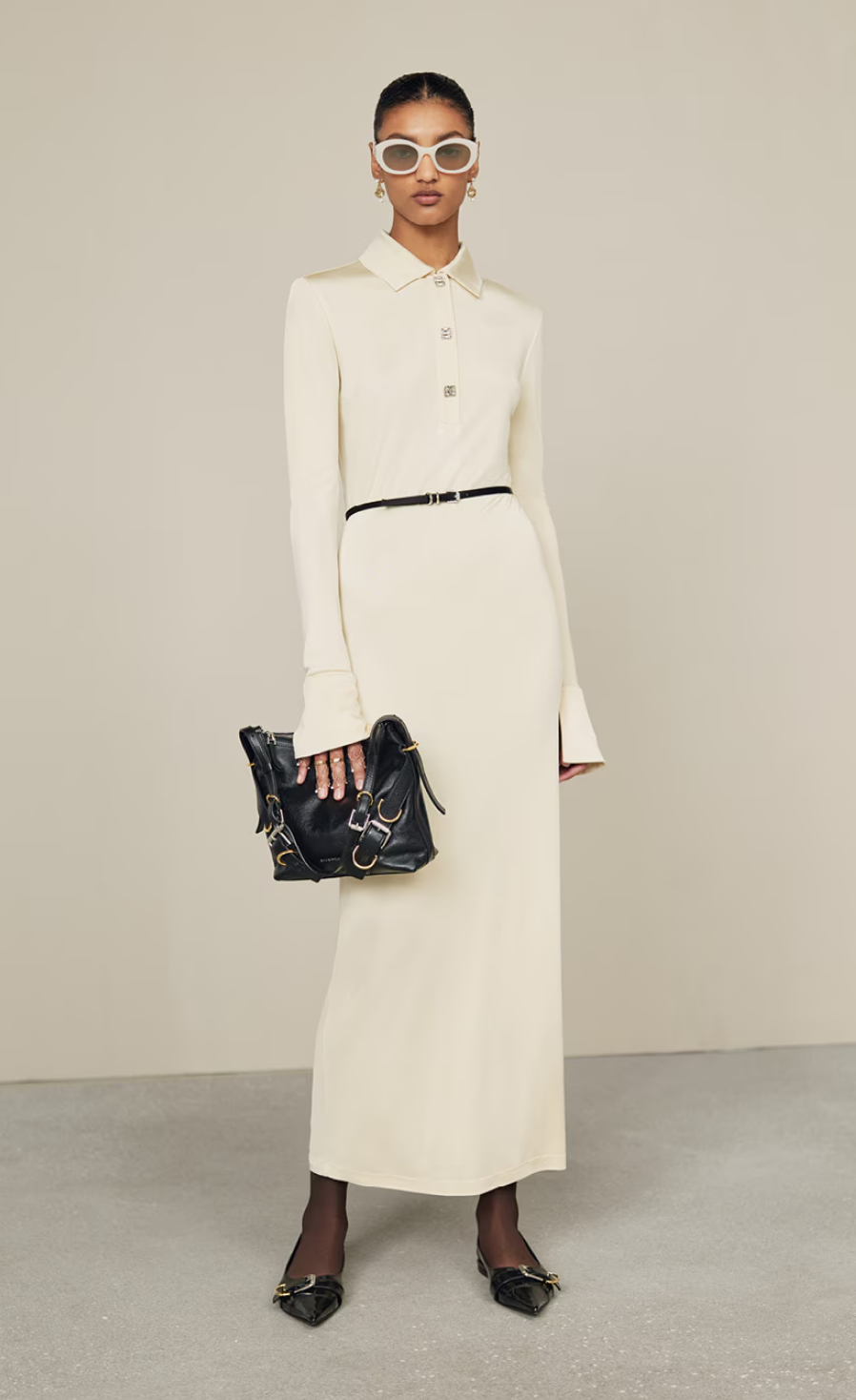 movement expressed through light dresses in flowing fabrics. Formal silhouettes borrowed from menswear